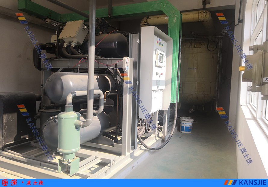 制藥廠用水冷螺桿式復(fù)疊制冷機(jī)組使用現(xiàn)場(chǎng)照片