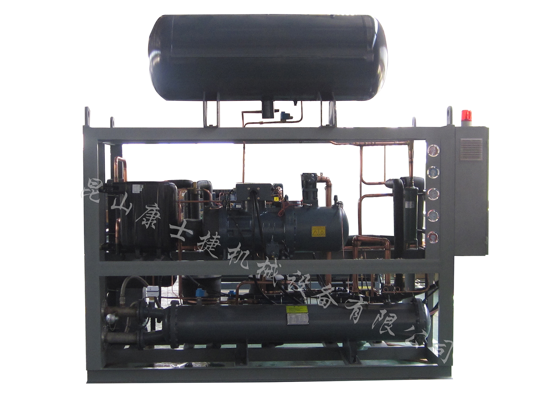2.二元復疊低溫冷凍機組:采用二元復疊制冷系統(tǒng),由高溫級(R404A/R22)低溫級(R23/R13)組合而成,可提供-40℃- -85℃低溫工藝冷源;機組制冷量范圍在1kw~200kw;